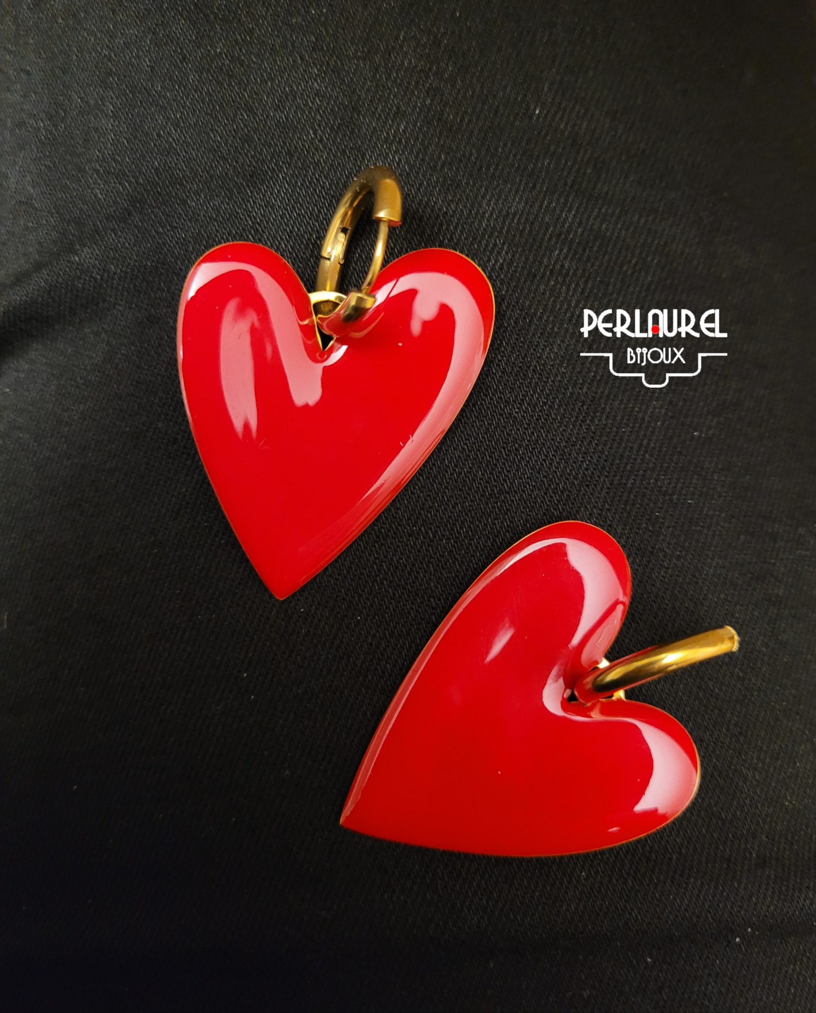 Créoles rondes en acier inoxydable 304L doré et cœurs en résine époxy et acier inoxydable 304L doré.