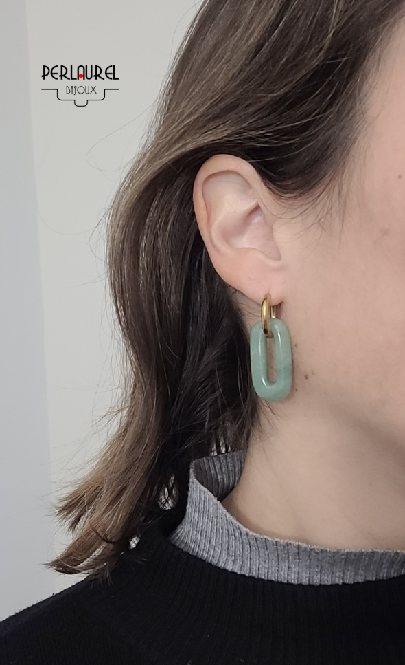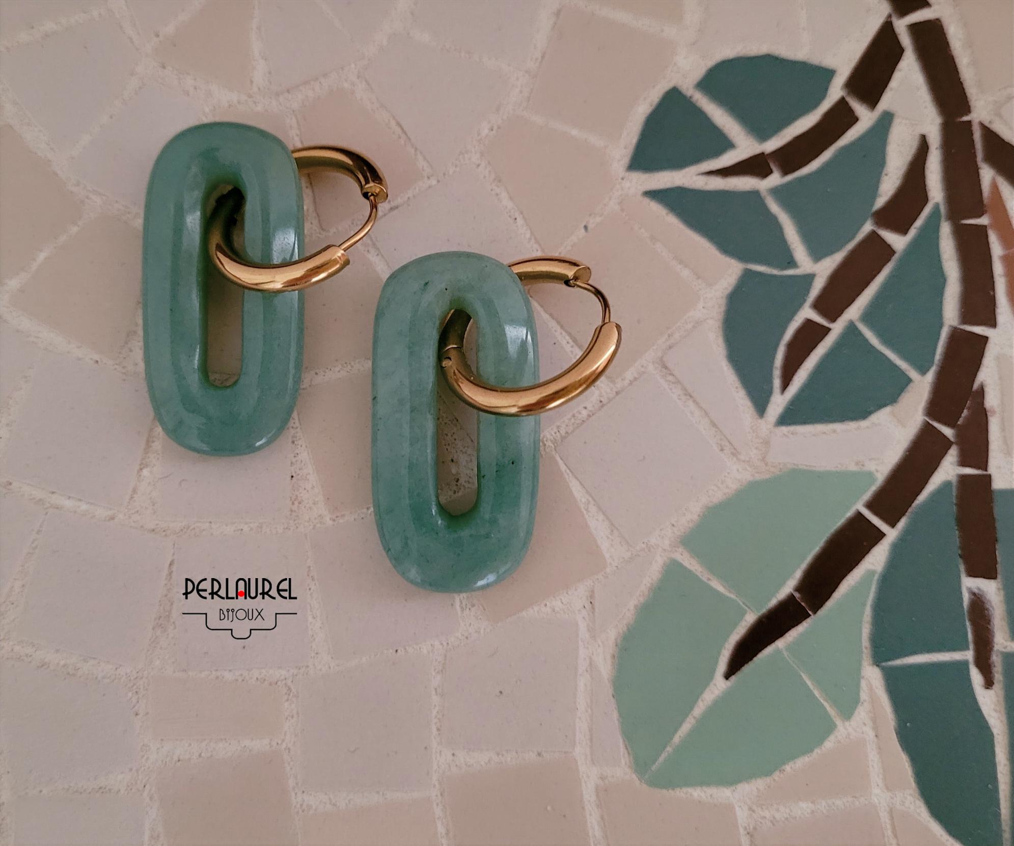 Créoles rondes en acier inoxydable 304L doré et pierres ovales en aventurine.
